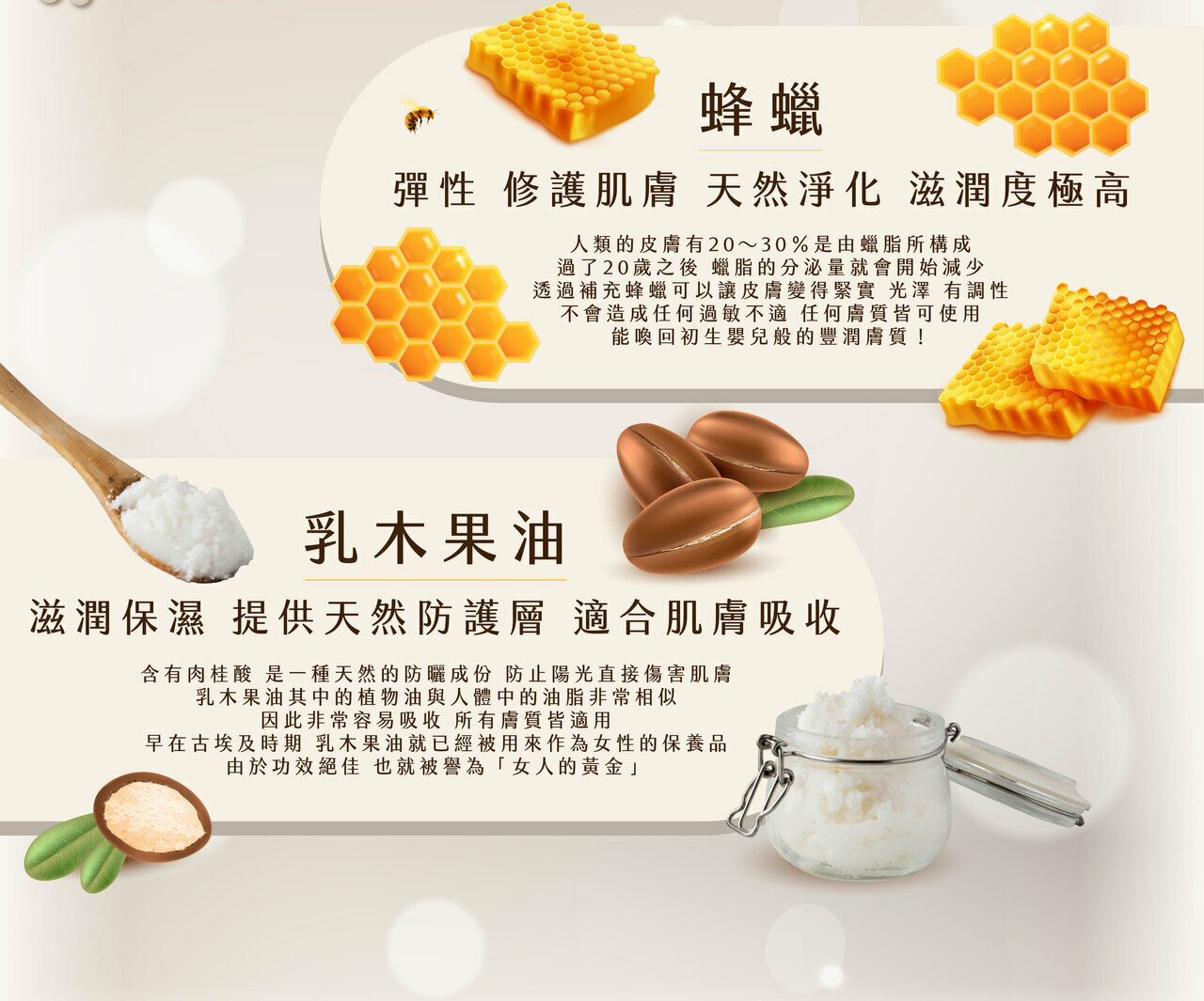 *富含潤膚劑的橄欖奶油(Olive Butter)可滋潤和調理肌膚