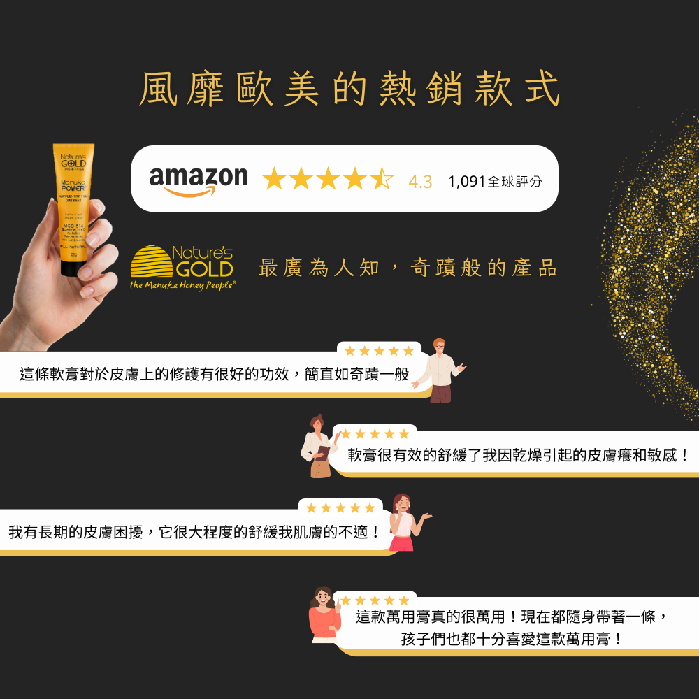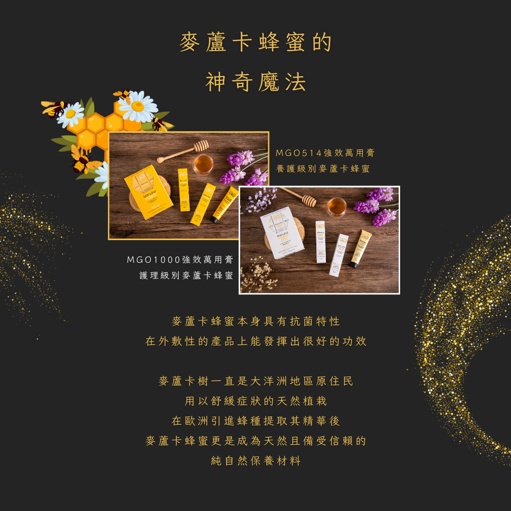 • 這款超高效的麥蘆卡蜂蜜天然軟膏,是市場上最強大的。